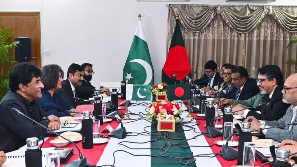 ওয়ার্কিং গ্রুপ- আলোচনায় পাকিস্তানের বাণিজ্যমন্ত্রী ও বাংলাদেশের বাণিজ্য উপদেষ্টা ব্যবসায়ীদের আশ্বস্ত করেছেন যে, শিগগিরই একটি যৌথ বাণিজ্য ওয়ার্কিং গ্রুপ গঠন করা হবে। এর মাধ্যমে বাণিজ্য সংক্রান্ত আলোচনার প্রাতিষ্ঠানিক কাঠামো তৈরি হবে।